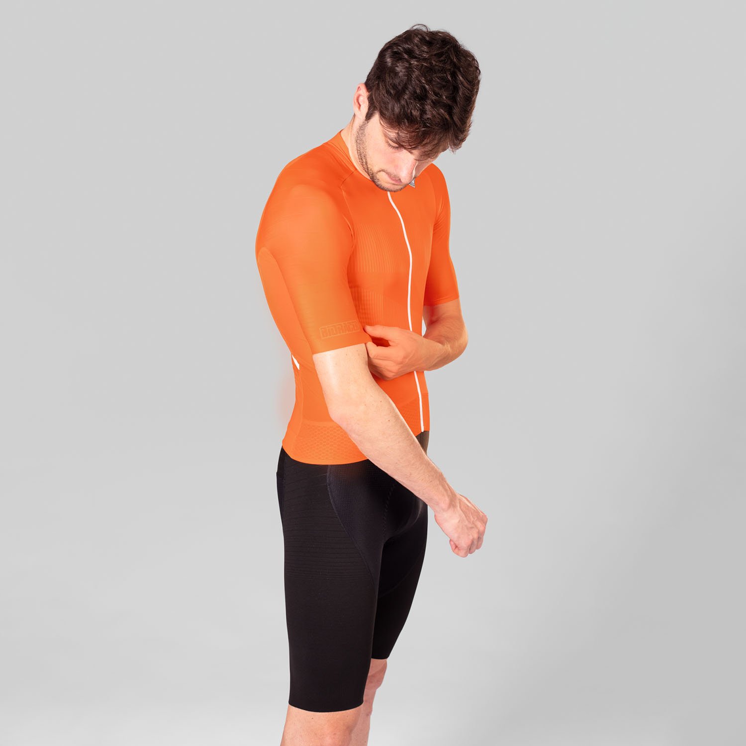 - Hálós erőpánt: A mez akkor is a helyén marad, ha mélyen behajolsz az aerodinamikus pozícióba.