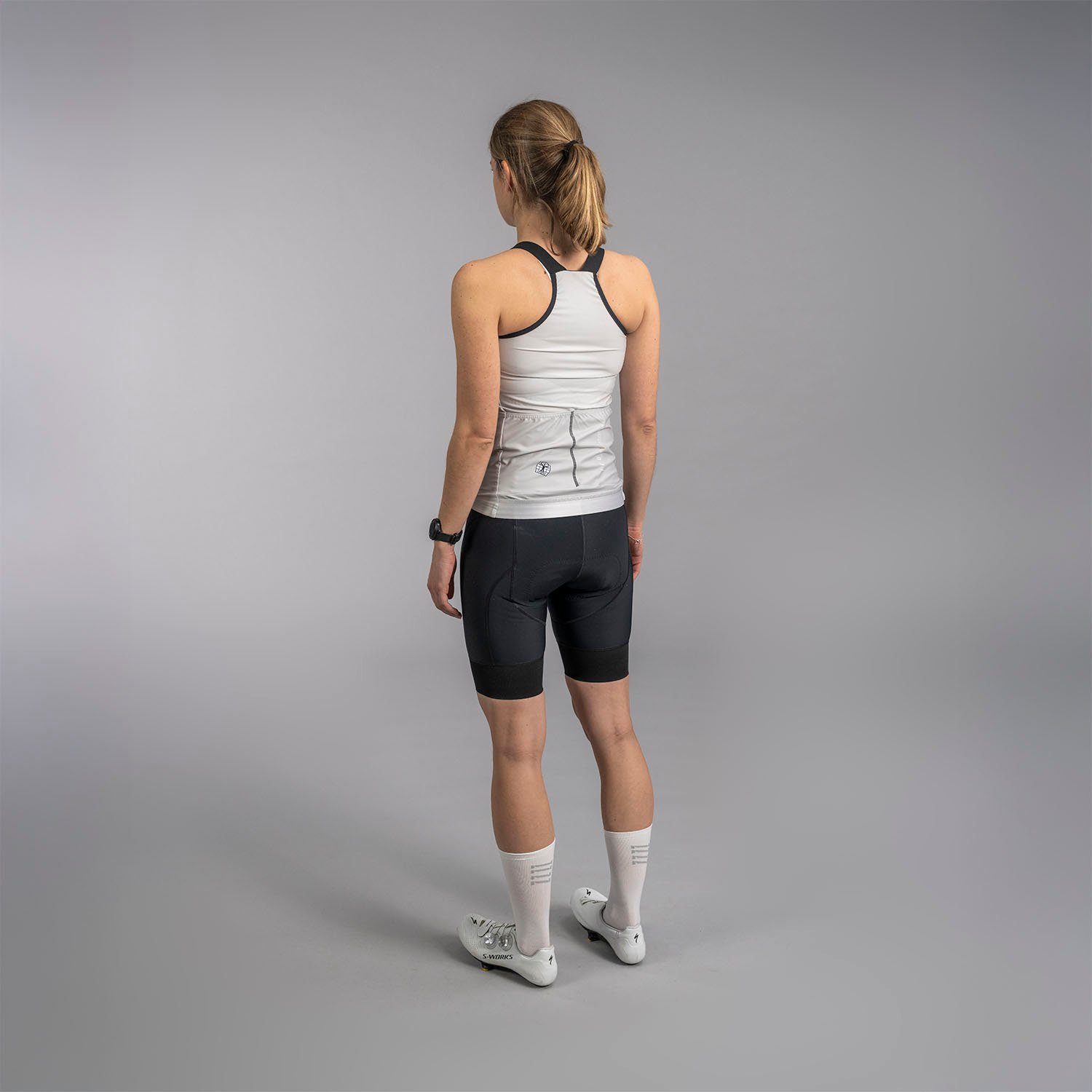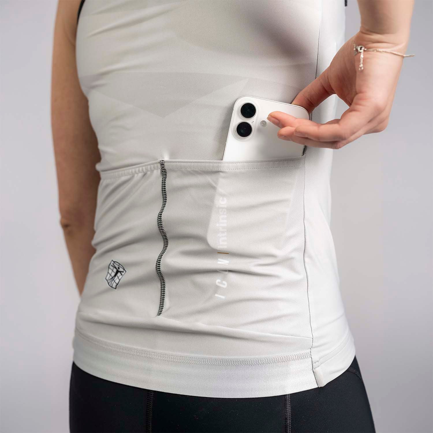 A rugalmas derékrész és pántok szilikonos szegéllyel biztosítják, hogy a felsőd végig tökéletesen a helyén maradjon a teljes tekerés során. A hátsó részen elegendő hely található az értékeid tárolására a könnyen hozzáférhető nyitott hátsó zsebekben.