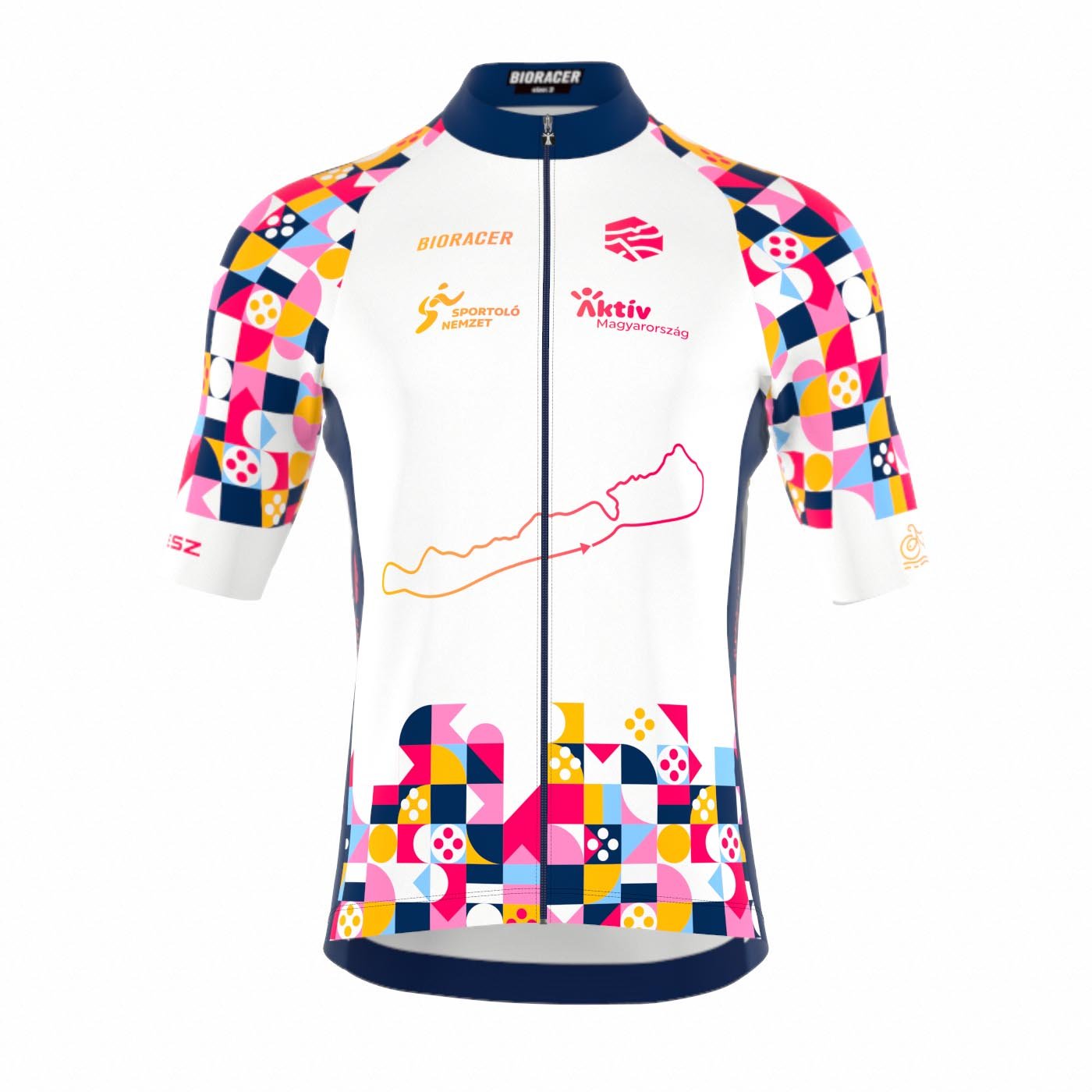 Ez a klasszikus szabású, prémium minőségű kerékpáros mez tökéletes választás az esemény résztvevőinek és csapatos bringázásokhoz egyaránt.
