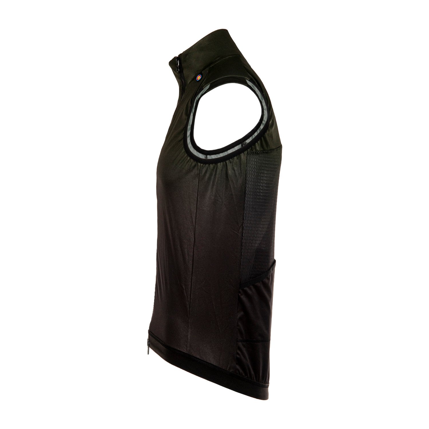 Az elasztikus derékpánt biztosítja, hogy a mellény végig a helyén maradjon a teljes tekerés alatt, még akkor is, ha aerodinamikus pozícióban tekersz. Az aszimmetrikus cipzár gondoskodik arról, hogy a mellény cipzárja ne zavarjon, amikor több réteget viselsz.
