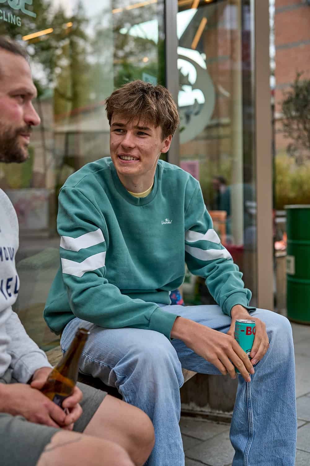 A Finish Sweaterrel mindig egy lépéssel előrébb jársz. Portugáliában készült, ez a 100%-os pulóver a kényelmet és a karaktert ötvözi sportos, vintage megjelenéssel. Az ujjakon futó fehér csíkok – amelyeket az ikonikus célvonal ihletett – dinamikus, sebességet és stílust sugárzó külsőt kölcsönöznek.