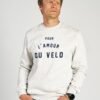A kerékpározás iránti szeretetért! Szlogenjünk és életstílusunk több mint 10 éve, most pedig pamuton örökítettük meg. Portugáliában készült és floc technológiával nyomtatva, ez a pulóver a klasszikus kerékpáros mezek egykori nyomtatási technikájára emlékeztet, egyedi retro hangulatot kölcsönözve neki. Mutasd meg szenvedélyed a kerékpározás és a versenyzés iránt a L’Amour pulóverrel!
